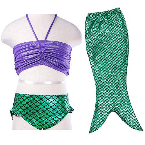 BAOHULU 女の子 子供水着 セパレート 可愛い 人魚姫 人魚 衣装 3点セット 4色揃え コントラストカラー配色 優雅 可愛い ベビー水着 柔らかい 快適 スイミングウェア