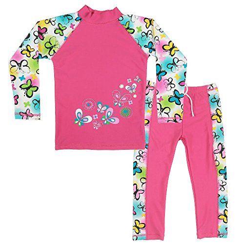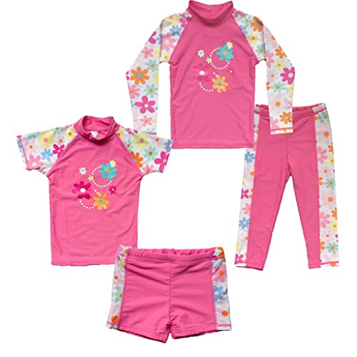 BAOHULU 子供 女 半袖 長袖 水着上下セット UVカットファッション キュート 柔らかい 伸縮性 カラーステッチ 日やけ止めスタイル スイミング スーツ