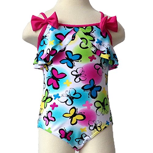 女の子 子供みずぎ 可愛い 花柄 フリル ファッション キュート ワンピース水着 柔らかい 快適 スイミングウェア (7-8歳(ラベル NO.134/140), 蝶)