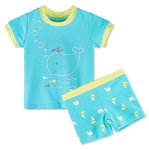 BAOHULU キッズ ラッシュガード 水着 可愛いピンク 花柄 日焼け止め 半袖 キュートセパレートスタイル水着 柔らかい 快適 スイミングウェア S256_Blue_2A
