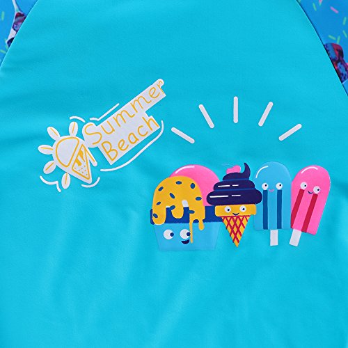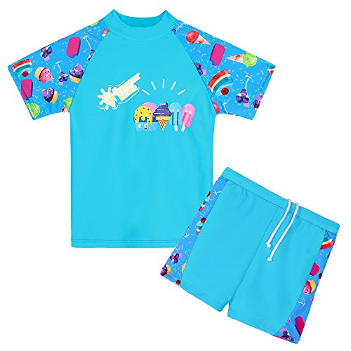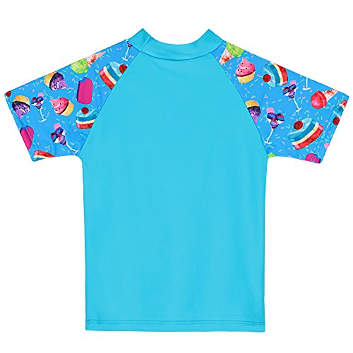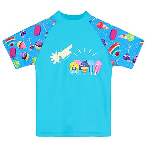 【水着子供用】女の子 ラッシュガード セパレー水着 半袖 ファッション キュート 柔らかい 伸縮性 可愛い花柄 カラーステッチ 上下セット水着 スイミングスーツ (7-8歳(ラベル NO.8A), アイスクリーム)