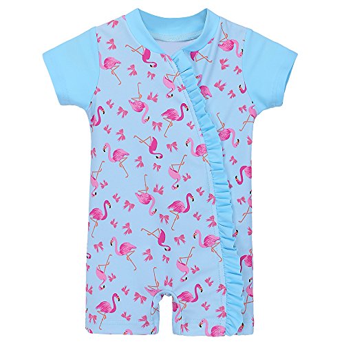 BAOHULU ベビー 女の子 半袖 花柄  心柄 可愛い 日焼け止め 連体水着 スクール  幼稚園用 (2-3歳(ラベル NO.3A), ライトブルー)
