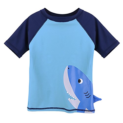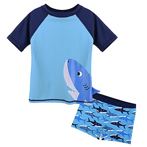 BAOHULU キッズスクール水着 ラッシュガード 水着 可愛い 花柄 日焼け止め 半袖 キュートセパレートスタイル水着 柔らかい 快適 スイミングウェア (6-12ヶ月, 鮫)