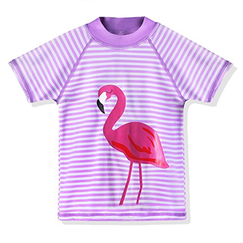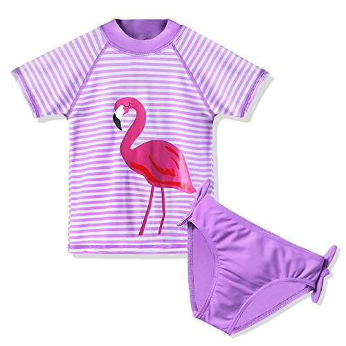 【水着子供用】女の子 ラッシュガード セパレー水着 半袖 ファッション キュート 柔らかい 伸縮性 可愛い花柄 カラーステッチ 上下セット水着 スイミングスーツ (2-3歳(ラベル NO.4A), パープル)