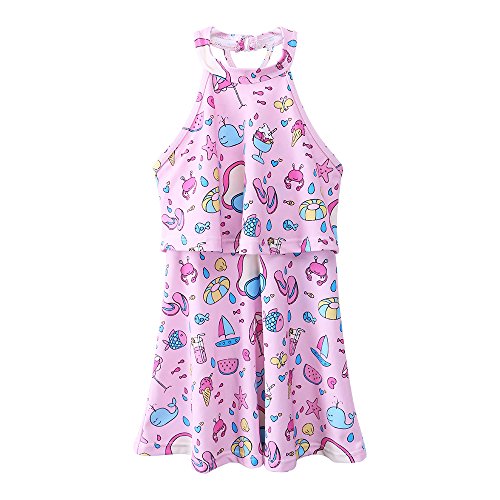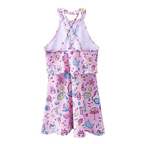 BAOHULU 女の子 子供 女児水着 みずぎ 可愛い ストライプ ワンピース 連体水着 かわいい 帽子 チュチュ付き キュート 水着 (11-13歳(ラベル NO.12A), 花柄)