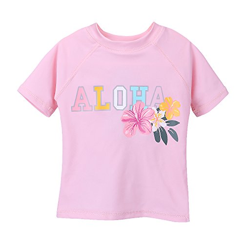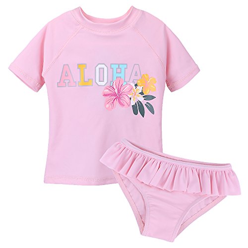 BAOHULU キッズスクール水着 ラッシュガード 水着 可愛い 花柄 日焼け止め 半袖 キュートセパレートスタイル水着 柔らかい 快適 スイミングウェア (6-12ヶ月, ピンク) S279_PinkShort_12M