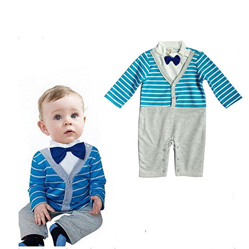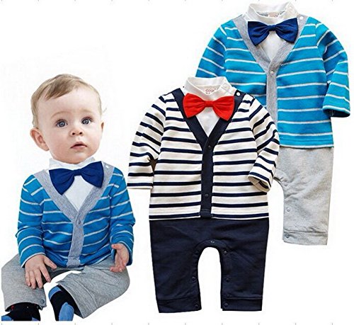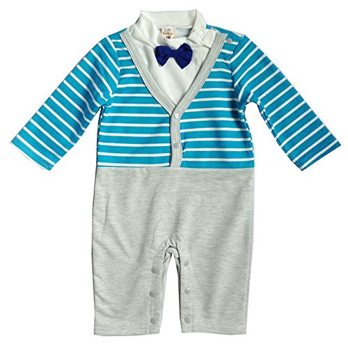 BAOHULU ベビー服 男の子用 ロンパース フォーマル カバーオール セレモニー ベビー肌着 ストライプ 蝶ネクタイ付き お出かけ着 出産/百日祝い 写真/撮影 ベビー用 洋装