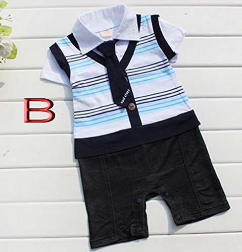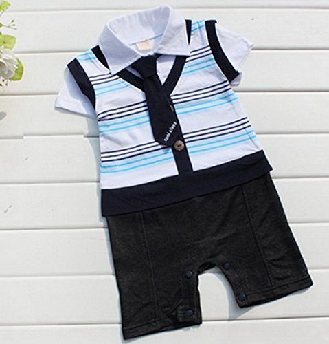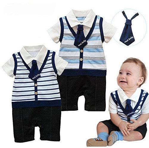 BAOHULU ベビー服 ロンパース 男の子用 ベビー肌着 ストライプ セレモニー ネクタイ付き お出かけ着 百日祝い 写真撮影