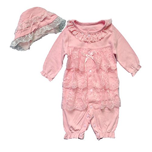 BAOHULU ベビー服 ロンパース 女の子用 カバーオール ベビー肌着 レース フリル リボン 襟 帽子付け お出かけ着 セレモニー 百日祝い 出産お祝い 写真/撮影