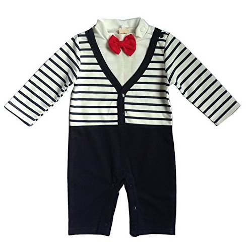 BAOHULU ベビー服 男の子用 ロンパース フォーマル カバーオール セレモニー ベビー肌着 ストライプ 蝶ネクタイ付き お出かけ着 出産/百日祝い 写真/撮影 ベビー用 洋装