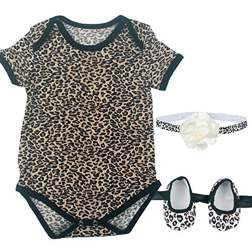 BAOHULU ベビー服 ロンパース 女の子 綿 夏/秋 カバーオール ベビー肌着 豹柄/花柄 ロンパース/コサージュ/シューズ3点セット お出かけ着 セレモニー 百日祝い 出産お祝い 写真/撮影