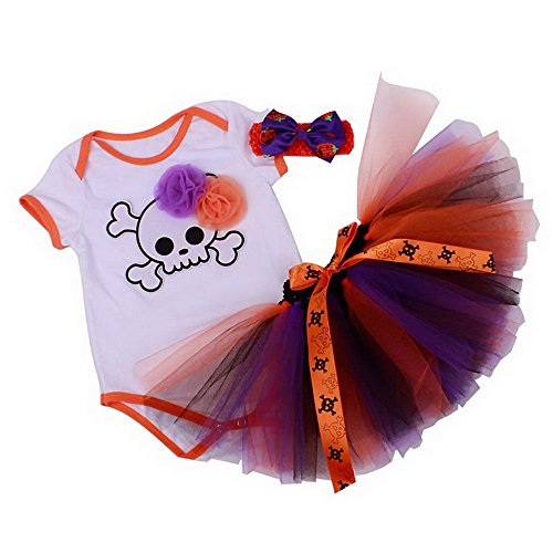 BAOHULU ベビー服 ロンパース 女の子用 カバーオール 綿 ヘアバンド/ロンパース/チュールスカート3点セット 髑髏/かぼちゃ ハローウィーン 日常着 百日祝い 出産お祝い 写真/撮影