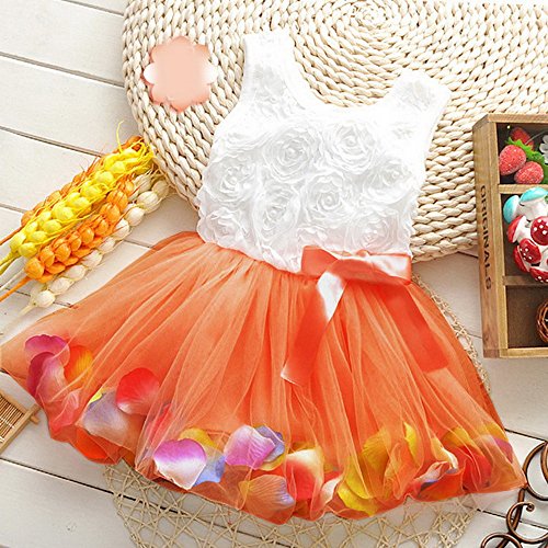 BAOHULU ベビー 女の子用 6色揃い チュチュドレス ワンピース フォーマルドレス 袖無し 巻き花 パールビーズ付き ふわふわ チュールスカート付き プリンセススカート P077_Orange_120