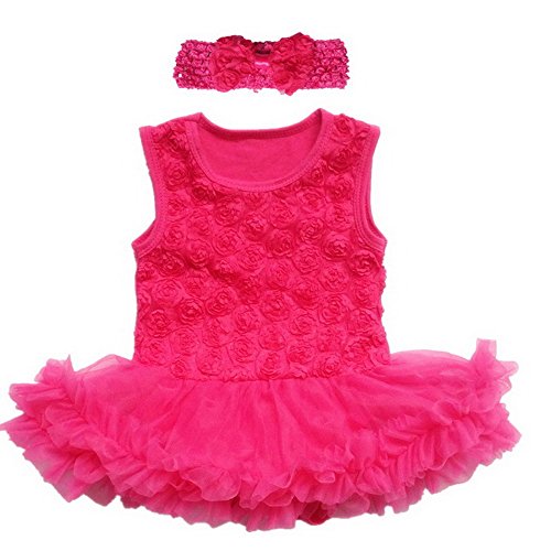 BAOHULU ベビー 女の子用 フォーマルドレス ワンピース 袖無し プリンセス 巻き花 3色揃い 無地 ふわふわ ヘアバンド/チュールスカート付き プリンセススカート 写真 撮影 フラワードレス