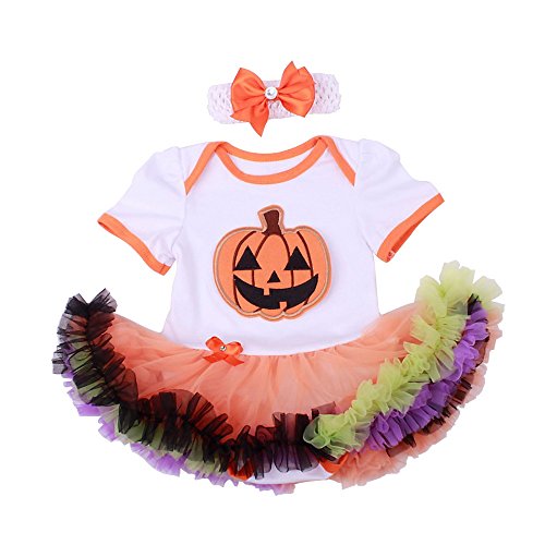 BAOHULU ベビー服 ワンピース 女の子用 チュールスカート 半袖 綿 ヘアバンド/ワンピース2点セット 3色揃い 髑髏/かぼちゃ ハローウィーン 日常着 百日祝い 出産お祝い 写真/撮影