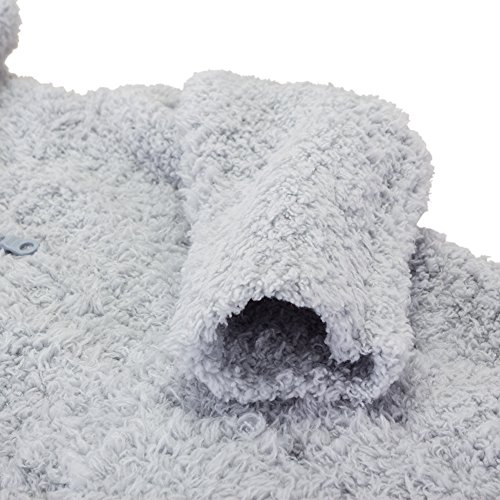 もこもこの生地が可愛らしいベビーパーカーです。お肌に優しく、とても柔らかいマイクロファイバーを使用しているので、お子様も快適に過ごすことができます。吸水性、放湿性に優れており、洗濯後も乾きやすく、一年中お使いいただけるアイテムです。出産祝いなどにおすすめです。