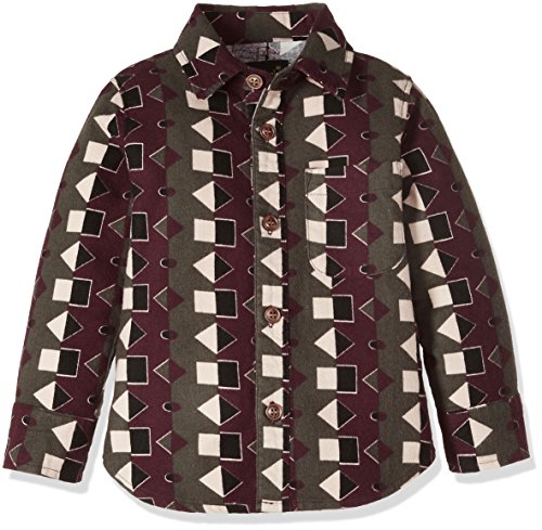 《春秋冬対応》BAROCK(バロック) 幾何学柄長袖シャツ 90cm /エンジ NO.F-561015