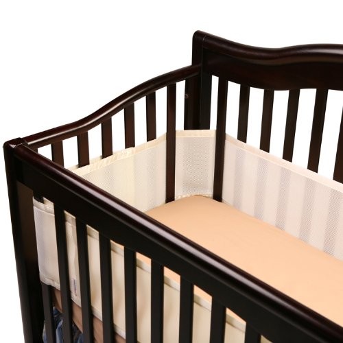 アメリカで、いくつもの賞を受賞している赤ちゃんんの安全を第一に作られたベビーガードです。特別なメッシュ素材で作られているので、ガードを空気が通過、赤ちゃんがガードに顔をつけて窒息する心配を防ぎます。 •Solid colors coordinate with most bedding sets •Reduces the risks of suffocation, entanglement and climbing •Soft and padded, keeps little limbs safely inside •Easy-wrap design; adjustable to fit cribs with 4 slatted sides •Collapses to impede climbing •Portable and durable