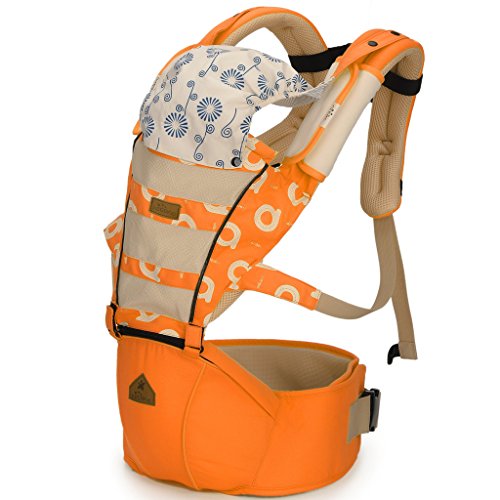 抱っこ紐 おんぶもできる抱っこ紐 ベビーキャリー lanova 新生児から使える (スリーピングフード&よだれカバー付き 防寒 花柄) オレンジ