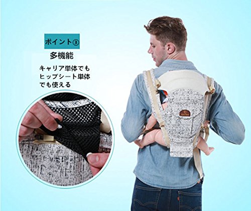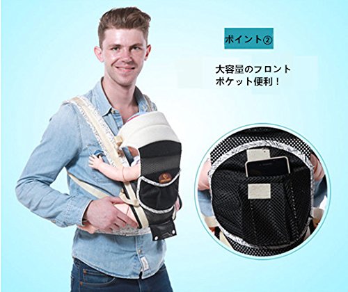 - 対面抱き、前向き抱き、腰抱き、おんぶもできる抱っこ紐。使い方は7通り以上。