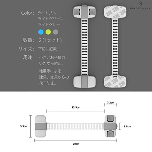 ベビーガード ストッパー ベビー&チャイルド ドアロック 3M 長さ調節可 2個 1セット いたずら 事故 防止 地震 落下 対策 BEATON JAPAN (ブルー)