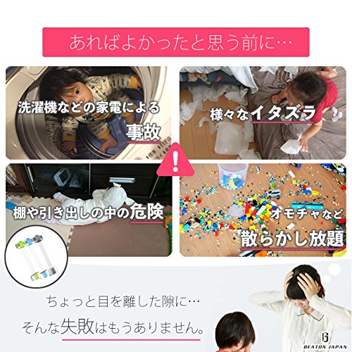 - 棚、引き出し等に取り付けることで、小さいお子様のいたずら防止や、地震など予期できない事故を防止します。