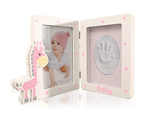 クレイキットが付属しておりますので今この瞬間を思い出として残すことができます。 セット内には組み立てに必要なものが全て含まれています。 木製フォトフレーム、粘土、木棒、説明書。 粘土は練ると柔らかく変化するドライタイプのホワイトクレイです。クリアに保管できるガラスとかわいいキリンのデザインフォトフレームです。 やさしく可愛い色合いのピンクとブルーの2色からお選びいただけます。 シンプルでコンパクトな見開きタイプなので、テーブルなどに飾っていただいてご家族だけでなくお友達などにも見て楽しんでいただけます。 手足型を制作する工程はシンプルです。混ぜる、焼くなど複雑な作業はありません。 形を取ったら乾かすだけで、なめらかで固い表面が出来上がります。お子様との大切な思い出の品を一緒に作りませんか。 クレイは赤ちゃんにも安全な素材を使用しております。毒性が無く、新生児のお子様にも安心してお使いいただけます。 フレームの見開き左側はお子様の写真や絵などを飾ることが可能です。手足型用のクレイは台紙に貼り付ける仕様ですので周りの余白は自由に装飾可能です。日付を書いたりお好きなシールなど貼ったり、クリエイティブに楽しんでいただけます。世界でたったひとつのオリジナルの作品を制作することができます。 何らかの理由でお客様のご期待に添えなかった場合には、全額返金させていただきます。ショップにご連絡ください。
