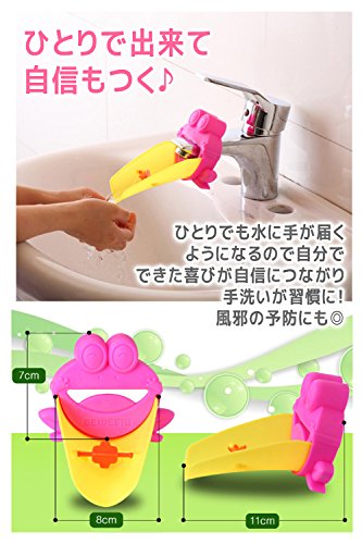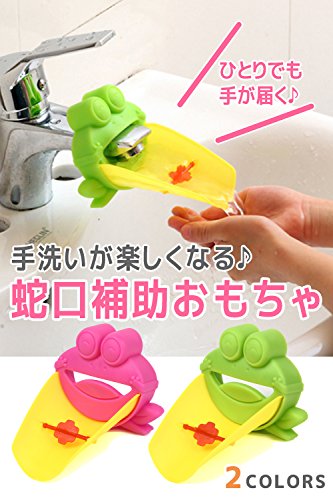 小さいお子様でも手が届く!蛇口補助おもちゃ。かわいいカエルモチーフ!クルクル回転して楽しく手洗いできます。やわらかいシリコン素材で当たっても痛くなくお手入れも簡単!ひとりで出来た〜♪の喜びの声が聞こえてきそう!ひとりで出来ると自信がつき、手洗いのも習慣にもなり風邪の予防にもなります。