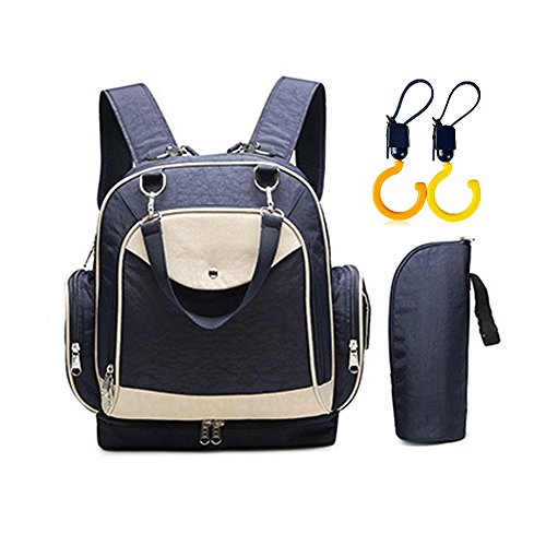 3つのアレンジ マザーズリュック 大容量ママバッグ! 保温哺乳瓶ポーチとおむつ替えシート、ベビーカーフック付 (紺)
