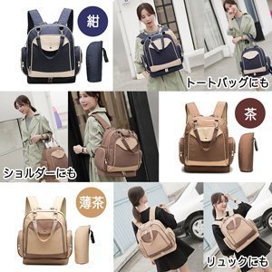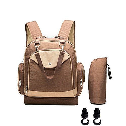 3つのアレンジ マザーズリュック 大容量ママバッグ!保温哺乳瓶ポーチとおむつ替えシート、ベビーカーフック付 (ブラウン)