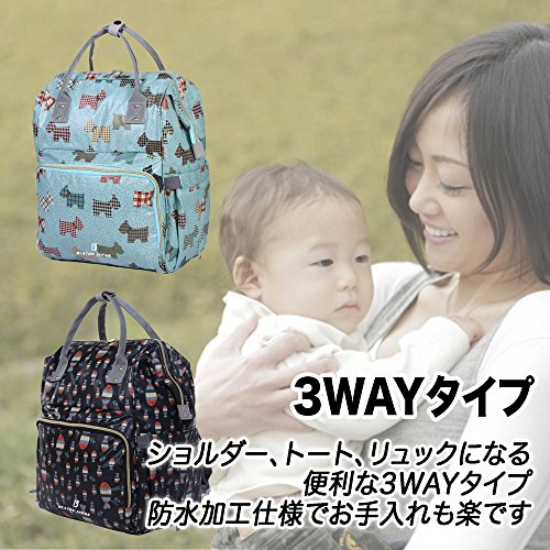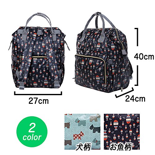 ママにうれしい!トートバッグにもショルダーバッグにもリュックにもなる3WAY大容量マザーズバッグ。両サイドにはポケットが2つ。ティッシュやお尻拭きシートなど入れればさっと取り出せて便利です。防水加工仕様。かわいいお魚柄と犬柄の2タイプかあお選び頂けます。