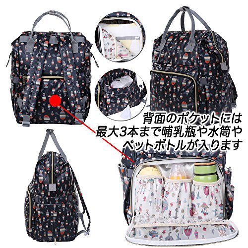 - 正面、両サイドになどポケットも沢山あり仕分けに便利!正面ポケットには哺乳瓶やペットボトルが最大3本まで入ります