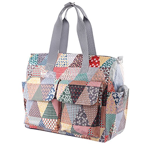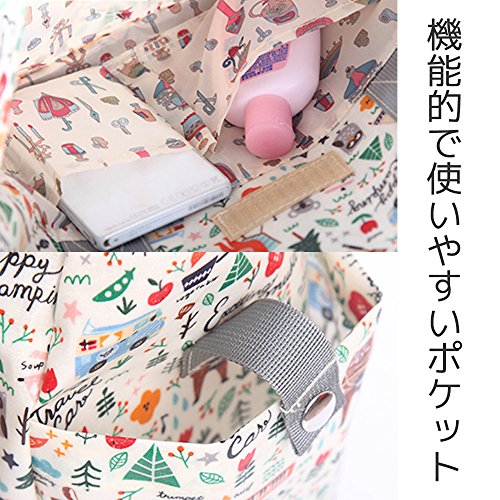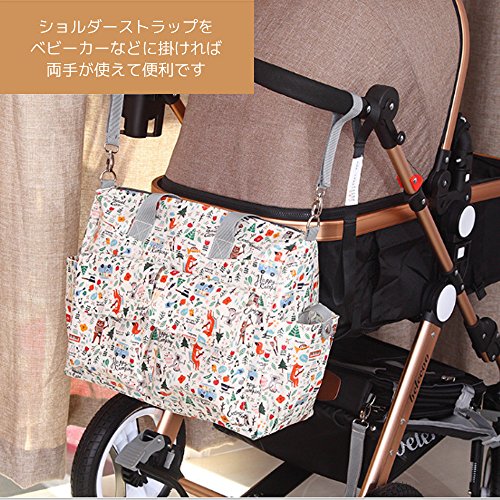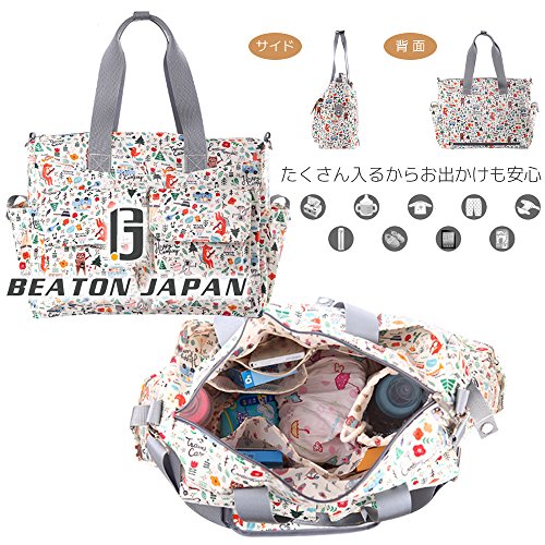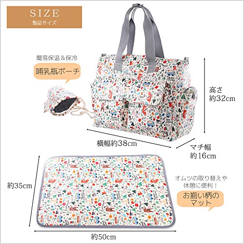 ギュッと凝縮 マザーズ トートバッグ 2WAY 多機能ポケット ショルダーストラップは肩パット付。簡易保温保冷機能がついた哺乳瓶入れとコンパクトなレジャーマット付。2バリエーション (モザイク)