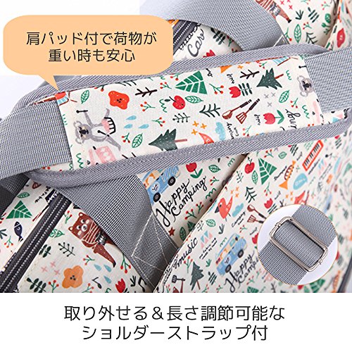 - ショルダーストラップには肩パット付。簡易保温保冷機能がついた哺乳瓶入れとコンパクトなレジャーマット付です。