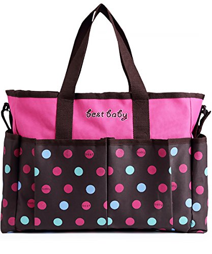 - ドット柄がキュートなマザーズバッグ。撥水性のあるナイロン製の生地なので軽くて丈夫。底板が入っており型崩れしにくいから使いやすい。