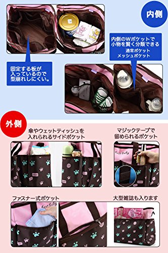 - 2WAY仕様で手提げもショルダー掛けもできます。またベビーカーに固定するベルトも付属しており様々なシーンでお使いいただけます。