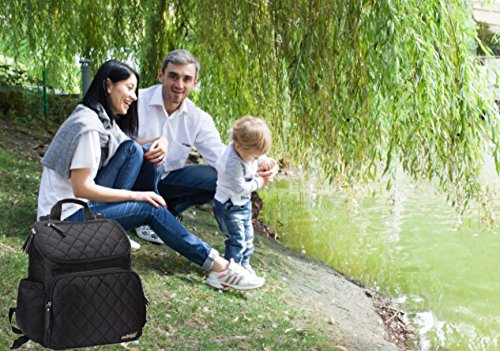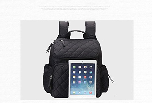 - メインポケットには複数のしきりが備わって、ベビー用品(着替え、哺乳瓶、水筒、オムツ、粉ミルク、タオル)、あるいは通勤用品(お化粧ポーチ、お財布、スマホ、鍵、ipad、A4ファイル、ノートパソコンまで)はすっぽり収納できます。