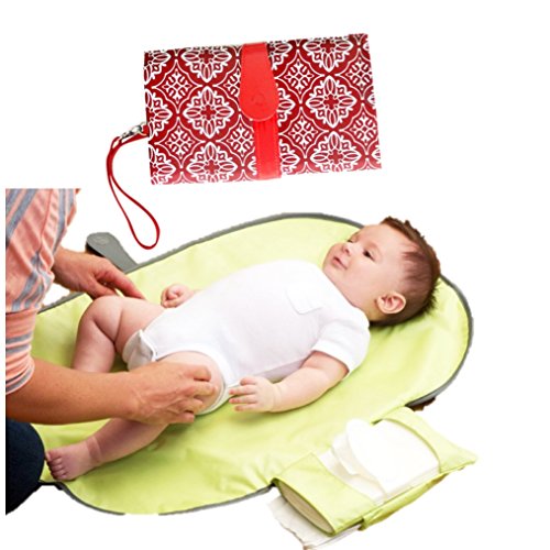 赤ちゃんマット おむつ替え おしゃれ トイレ ベビーマット おむつマット 人気 ストラップ 小物入れ付き 30日間返金保証付き (赤(Red))
