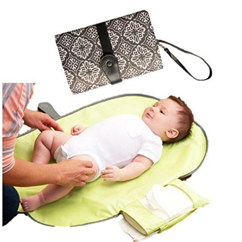 折りたたみが可能な携帯型のおむつ取り替えマットです。小物入れも追加されたため、急場であってもおむつの取り替えに必要なアイテム(ティッシュ、おむつ等)を収納しておくことができます。おしゃれで、シンプルな構造のため、取り扱いが非常に簡単で、ストラップ付きにより持ち運びも便利。