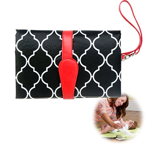 便利でおしゃれな携帯用おむつ替えマット 緊急時、替えのオムツやウェットティッシュなど 入れておけるワイドポーチ付き。 折り畳み可能で子育てに頑張るお母さん、お父さんにベストなアイテムです