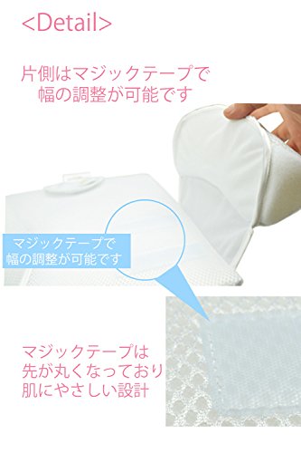 - 幅はマジックテープで調整可能。マジックテープの先の部分は丸い繊維で作られているので肌にやさしい作りです。