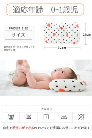 さらりと肌にやさしいコットン素材。産まれてから1歳くらいまでのやわらかな赤ちゃんの頭にやさしくフィットする凹型のベビーピローです。ずっと同じ位置で寝ているために起こる絶壁や、向き癖、薄毛などの予防に役立ちます。中綿はお布団のようにフカフカの綿素材。