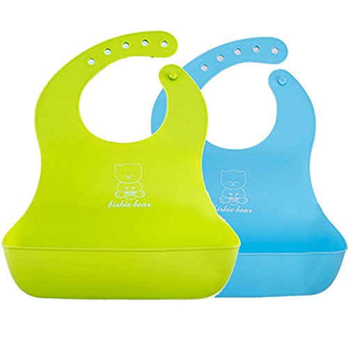 ベビー 赤ちゃん スタイ ビブ 食事用 エプロン 前かけ よだれかけ ソフト おおきな 受け皿 ポケット付 袖なし 水洗い可 シリコン 男の子 女の子 キッズ 5段階 サイズ調整 持ち運び 清潔 セット BEATON JAPAN (グリーン/ブルー)