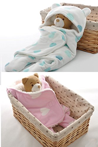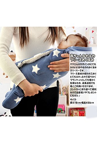クマさんのデザインがとてもかわいいふわっふわのおくるみスリーパーです。星柄、ハート柄、水玉など色々なデザインがあり、おしゃれでとてもかわいいです♪ フリース素材が使われており、とてもふわっふわで柔らかく、これからの寒い時期、防寒具としてぴったりです。 ブランケットとしても暖かく有用なため、新生児や赤ちゃんの時期だけでなく長くご利用いただけます。 コンパクトに持ち運べて便利なので、 出産祝いやプレゼントにもぜひ♪ サイズ:長さ78cmx幅最大86cm