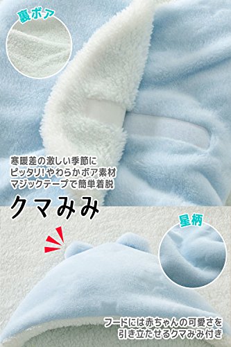 寒暖差の激しい季節に安心のボア素材おくるみ。足が動きやすい立体裁断。マジックテープで着脱簡単できます。フードには赤ちゃんのかわいさを引き立てるクマみみ付き。おくるみとして寝かしつけたあとのスリーパーや毛布として。豊富なカラーバリエーションで男女兼用。出産、誕生祝いにも最適です。