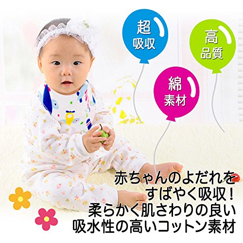 - 赤ちゃんのよだれをしっかり素早く吸収する、吸水性の高いコットン素材。防水仕様ではありませんが、その分しっかり厚みもありとても柔らかく肌触りが優しく赤ちゃんの敏感肌にも安心♪