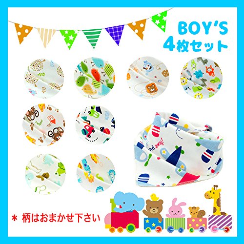 - かわいいデザインのスタイ4枚セット!男の子用は車や飛行機、青や緑が入ったデザインを。女の子用にはかわいい動物やお花柄やハートが入ったデザインをスタッフが厳選してセットにしました!どれもキュートなものばかり!※柄は選べません。