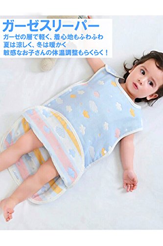 とてもふわふわのガーゼスリーパー。 夏は涼しく、冬は暖かい万能の通気性と保湿性があります。冬にはお子様の寝冷え、夏には寝苦しい夜の汗などをしっかりカバーし、お子様にとって気持ちいい環境を作り、風邪なども心配ありません。 【丸洗い洗濯可能】洗濯機で丸洗い可能なため、よだれや食べこぼし、そのほか汚れなども気にせず常に清潔に保ちます。また洗うたびにガーゼがふわふわで気持ちよくなります。【脱げにくい】動きまわるお子様はそれだけで大変。ガーゼスリーパーはサイドにボタンがついているので、動き回ったり寝ている際に脱げたりせず安心です。【対象】新生児から幼児まで幅広く長くお使いいただけます。 【サイズ】長さ70cm×幅40cm