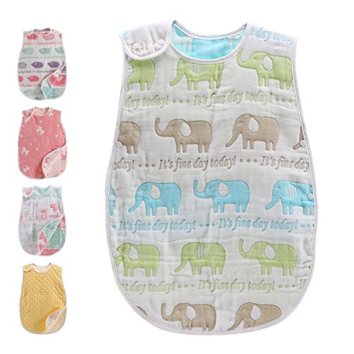 RAKUES JAPAN 8重 ガーゼスリーパー ふわふわ ガーゼ8枚 (60cm丈(ベビー), ゾウ(カラフル))