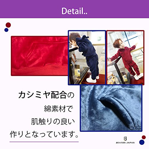 暖かく、動きやすい子供用セットアップです。高級感のあるカシミヤ配合素材で作られており、男女問わずご着用頂ける可愛らしいデザインとなっています。赤、青のカラー、サイズは90、110、150となっております。急なお出かけや、パジャマなど様々なシーンで活躍できます。プレゼントにも是非。